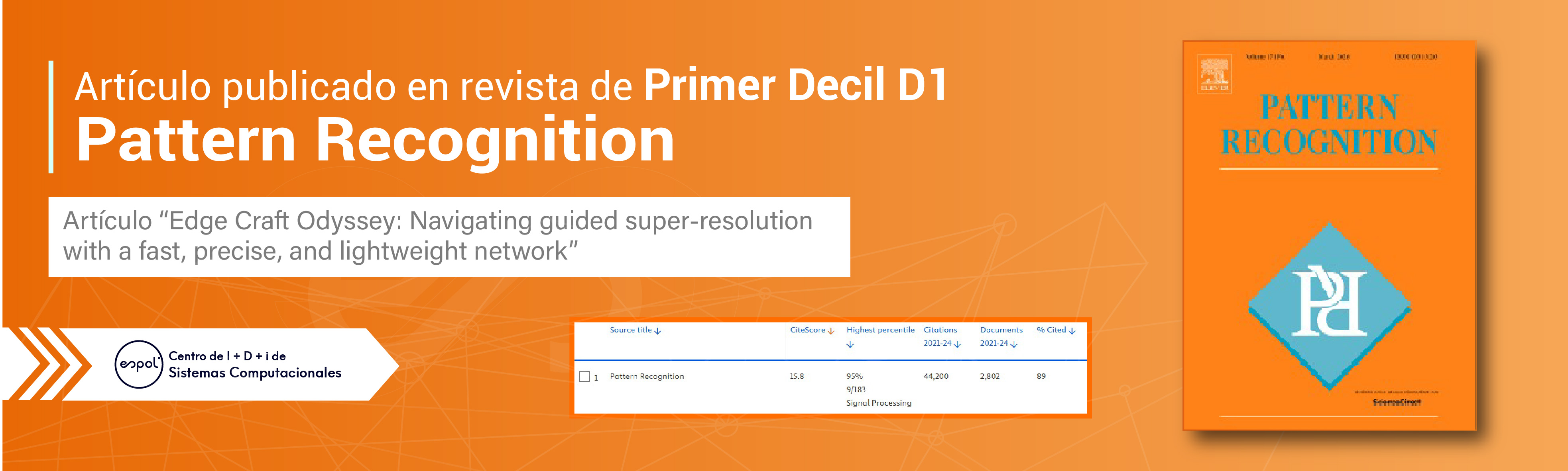 En la reconocida revista Pattern Recognition (Elsevier) clasificada en el primer decil (D1) según el citescore de Scopus se publicó recientemente el artículo “Edge Craft Odyssey: Navigating guided super-resolution with a fast, precise, and lightweight network”, desarrollado por Armin Mehri, Parichehr Behjati, Dario Carpio y Ángel D. Sappa, los dos últimos investigadores del Centro de I+D+i de Sistemas Computacionales (CIDIS) de la ESPOL.